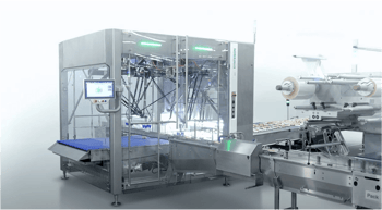 - RPP pick-and-place delta robots gently pick each product with vacuum end effectors and place the pastries into the cartoner’s infeed chain.