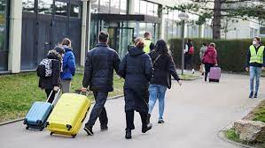 Refugees from Ukraine arriving at Syntegon's grounds in Waiblingen, Germany.